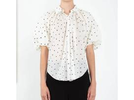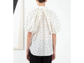 Fall in love with the brand with the "Charlie" Shirt in Ivory Cotton Voile with Black Polka Dots, Size L. Pair either with your favorite wide legged trouser or denim.