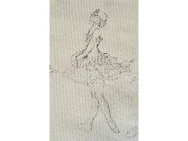ARTIST JOAN VENTIMIGLIA, A GRADUATE OF THE FASHION INSTITUTE OF TECHNOLOGY AND FORMER FASHION ILLUSTRATOR IN NEW YORK AND ROME, REDISCOVERED HER PASSION FOR DRAWING AFTER RAISING HER FOUR CHILDREN. INVITED BACKSTAGE BY HER DAUGHTER DANIELLE, ABT'S PRODUCTION STAGE MANAGER, JOAN WAS CAPTIVATED BY THE ENERGY AND ELEGANCE OF DANCERS IN REHEARSAL. WORKING QUICKLY TO CAPTURE FLEETING MOMENTS-SINCE DANCERS RARELY STAY STILL!-SHE HAS CREATED HUNDREDS OF EXPRESSIVE SKETCHES. FOR THIS AUCTION, SHE GENEROUSLY OFFERS THREE ORIGINAL WORKS FROM HER COLLECTION, ALL THREE FRAMED.