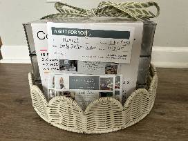 Enjoy a salon gift set from Spargo Salon and Spa ($165 value), including under-eye gel pads, a Spongellé lavender body wash buffer, an Oak & Elizabeth soy wax candle, R+Co Bleu Essential Shampoo & Conditioner, and a stylish cosmetic bag. Bring organization and style to your space with a home organization package from Organized Dwelling ($150 value), featuring a one-hour consultation with owner Emily for home organizing, interior design, staging, or holiday decorating, plus a cream scalloped tray and a 10-piece bathroom organizer set from The Home Edit. Complete your refresh with a Norwex cleaning basket ($350 value), including a carry-all tote, EnviroCloth, Window Cloth, Dusting Mitt, Cleaning Paste, Laundry Detergent, Mop System, Rubber Brush, and Body & Face Pack-providing chemical-free, eco-friendly cleaning solutions for a healthier home.