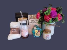 Experience comfort and care with this beautifully curated basket designed to send you the biggest hug! Hand-assembled in a homemade fabric basket, this package delights every sense and nurtures your well-being:
