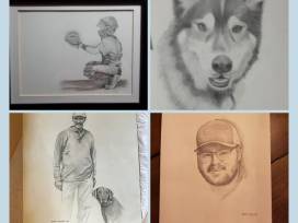 1Capture a cherished memory with a stunning, custom 16 x 20 graphite portrait by Michelle Schindler, a talented artist and dedicated volunteer at Gilda's Club Minnesota. Michelle's skillful hand will bring your beloved person or pet to life with exquisite detail and emotional depth, creating a one-of-a-kind masterpiece ready for you to frame and treasure forever.
