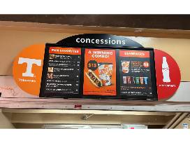 6This Tennessee Volunteers official menu board hung in the south concourse concession stands and feature both the beloved power "T" logo and the Coca-Cola bottle - a can't miss for collectors. Imagine this menu board in 20 years when family and friends will stare in wonder at the food options and prices from yesteryear.