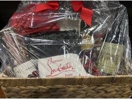 The prime possession of this basket is a stunning purse from Christian Louboutin - synonymous with sophistication and iconic red-sole glamour - adds timeless luxury to any wardrobe.