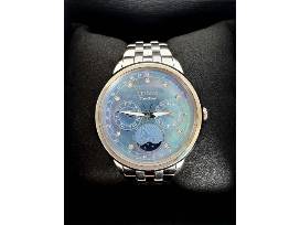 For a touch of modern elegance and functionality, the Citizen women's Calendrier from Dykman's Time Shop not only tracks the phases of the moon, but also displays the time, month, day, and date. The mother-of-pearl dial in a beautiful blue hue is inset with diamond accents and has reflective qualities. Along with a versatile 37mm silver-tone stainless steel case and bracelet, it runs on Eco-Drive technology, meaning it's sustainably powered by any light and never needs a battery - blending elevated style and advanced features into one elegant timepiece. Includes free band sizing from Dykman's Time Shop.