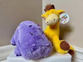 Hippopotamus and giraffe stuffed animals.