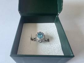 Gorgeous sterling silver ring containing one oval-shaped blue topaz gemstone. Ring size 7.