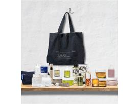 Included in denim tote bag: SEA LAVENDER IN SHOWER OIL 250ML, KYMA EAU DE TOILETTE 10ML, BLACK PINE BOUNCE DAY MOISTURIZER, BLACK PINE EYE SERUM 15ML, BLACK PINE UPLIFT CONTOUR SERUM, BLACK PINE OVERNIGHT REVIVAL SERUM 30ML, BLACK PINE PRIMUS BOOSTER SERUM 30ML, BLACK PINE PRIMUS DAY CREAM 40ML, BLACK PINE PRIMUS NIGHT CREAM 40ML, SANTO GRAPE MOISTURIZER 40ML, SANTO GRAPE VELVET SKIN DRINK 30ML, WILD ROSE SPOTLESS SERUM 30ML, YOGHURT PROBIOTIC DAY CREAM 40ML, YOGHURT EYE GEL 15ML, YOGHURT HYDROBIOME MASK 100ML, YOGHURT FOAMING CLEANSER 150ML, YOGHURT REBALANCING SERUM 30ML, OLIVE OIL 3IN1 100ML, OLIVE BLOSSOM BODY CREAM 200ML, OLIVE BLOSSOM SHOWER GEL 250ML, SANTO GRAPE MOISTURIZER MINI 20ML, SANTO GRAPE VELVET SKIN DRINK MINI 15ML, YOGHURT FOAMING CLEANSER MINI 20ML, SANTORINI GRAPE BODY CLEANSER 40ML MINI, SANTORINI GRAPE BODY MILK 40ML MINI, OLIVE BLOSSOM SHOWER GEL 40ML MINI, OLIVE OIL 3IN1 OIL 15ML MINI, DENIM MAKEUP POUCH.