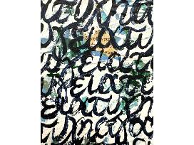 With every brushstroke, she affirms a word in Greek-Hope. Health. Luck. Love. Happiness. Joy. Peace.