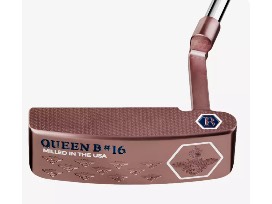 The Bettinardi 2025 Queen B 16 is a premium, blade-style putter known for its aesthetic appeal and performance. It features a traditional heel-toe weighted head shape with a wider flange and crowned topline for enhanced visual appeal at address. The putter is designed with a repositioned center of gravity (CG) that aligns with the flange, promoting stability and a more natural feel on the green. Bettinardi's Mini Honeycomb face milling provides excellent feedback and a responsive feel, while the Royal Rose PVD finish adds a unique