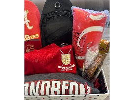 Calling all 59'ers! This Andrean Swag basket includes a cozy Andrean blanket, Andrean crossbody bag, XL Andrean golf polo, L Andrean t-shirt, driver cover, glass, lanyard and more