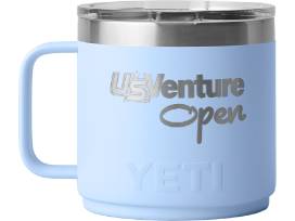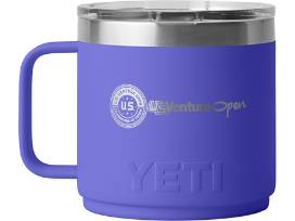 - Two (2) U.S. Venture Open-branded 14 oz. YETI Rambler Mugs in bold Big Sky Blue and Ultramarine Violet