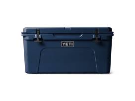This package includes the YETI Tundra 65 hard cooler (fits 77 cans or 58 lbs. of ice), Daytrip 5L lunch box, Rambler 20oz travel mug, and Rambler 14oz stackable mug, all in Navy.