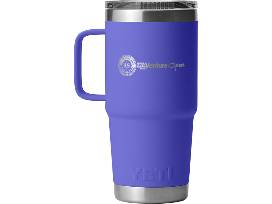 - Two (2) U.S. Venture Open-branded 20 oz. YETI Rambler Travel Mugs in Cape Taupe and Ultramarine Violet