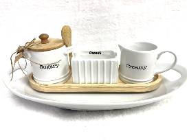 Set of 6 coffee mugs and a Sugar and Creamer serving tray