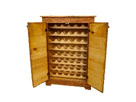 Pairing functionality with beauty and style, this one-of-a-kind, handcrafted wooden wine cabinet provides a statement piece for any wine enthusiast. This chest measures 19.5" deep x 33.5" wide x 48" high and provides space for 48 bottles of wine.
