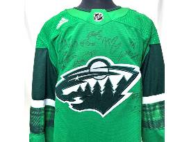 Bid now of this new, unworn authentic Adidas St. Patrick's Day themed jersey from the set created to be worn by the team during the 2021-22 NHL season. This size 54 jersey was signed by all members of the 2024-25 Minnesota Wild roster present on signing day January 22, 2025. Certificate of Authenticity available upon request.