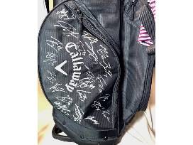 Hit the links repping your favorite hockey team when you bid on this golf package headlined by a Callaway Fairway Jim Beam and Wild branded golf bag, signed by the roster of the 2024-25 Minnesota Wild present on signing day January 22, 2025. Also included are two Minnesota Wild golf polos (White Levelwear Polo - Size XL, Purple Levelwear Polo - Size L), a State of Hockey adjustable hat, a pack of four Hx Pearl Calloway golf balls, a green Minnesota Wild Golf Towel, and a Minnesota Wild Foundation cooler bag. Local PICK UP ONLY. Item does NOT Ship.