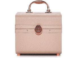 Enjoy this chic, adult Caboodle, MAC brushes, MAC Stack Mascara and MAC Duo lipstick. It's the perfect cosmetic case made of vegan leather and has sliding top trays, mirror and latch closure.