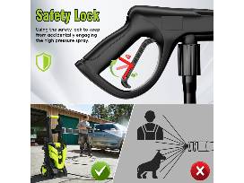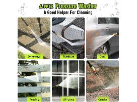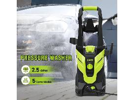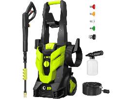 This high pressure cleaning machine with foam cannon is great for cleaning cars, fences, driveways and more. The Electric Pressure Washer has 2.5 GPM water flow, 4 quick connect spray nozzles allowing different pressure strengths for different jobs, a 20ft hose and 16ft power cord.