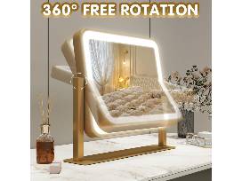 Perfect for your vanity or desktop, the 14" x 12" vanity mirror has a smart touch design with 3-color lighting modes to adjust brightness, 360 Degree rotation and high definition mirror.