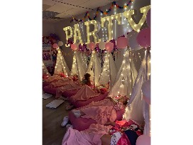 Well, we have the perfect solution! We have created sleep "unders"! A 3 hour party from 5-8 pm or 6-9 pm where they can have a slumber party experience with their friends, but go home and sleep in their own beds. The sleep unders will include a spa like experience - they'll come in their PJs, we provide robes and headbands, paint nails, & face masks then have a dance/karaoke party, limbo, play games, make cotton candy and then settle down in the cutest lit up tents and start a movie!