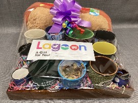 Drink up some fun with this Lagoon basket. Features (2) 2025 Single Day Passports; (11) Assorted Lagoon Mugs; (2) Lagoon Mug Shot Glasses; (1) Hot Dog Squishable; and (1) Coffee Tray.