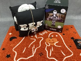 Plus add to a Halloween look on a couch or comforter with a 3-pack throw pillow set. Included: (2) black pillows with white lettering EEK & BOO; (1) white ghost-shaped pillow; 12" x 12".