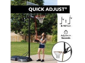 Take your game to the next level with the Lifetime 50-Inch Polycarbonate Adjustable Basketball Hoop. This portable basketball system from Lifetime Products features a clear view, 50-inch steel-framed, shatterproof backboard with a Speed Shift height adjustment mechanism that adjusts from 8 to 10 feet high.