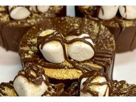 A S'mores Cake Puck is a delicious, bite-sized treat that combines the classic flavors of a s'mores campfire snack in a fun, portable form. It's made by blending moist chocolate cake with a rich, gooey marshmallow filling, crunchy graham cracker crumbs then dipping the cake puck in a layer of dark chocolate. The result is a sweet, indulgent, and nostalgic dessert that captures the essence of s'mores in every bite!