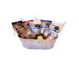 Indulge in a delicious and wholesome assortment from Ocean Ranch Organics. This charming metal pail is filled with six 10oz bags of assorted granola and eleven handcrafted granola bars-perfect for snacking, sharing, or gifting. Each item is made with high-quality, organic ingredients for a taste that's as nourishing as it is satisfying.