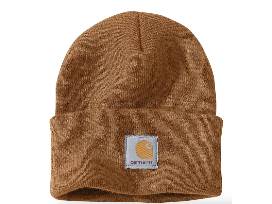 0Knit Cuffed Beanie, one size. Black and Carhartt brown