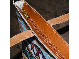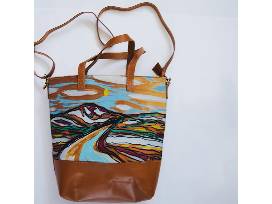 Enjoy Abby's amazing artwork anywhere you go! These stunning tote bags have a long, adjustable, and removable over the shoulder strap. They also have two sturdy leather handles. The inside has a silky printed liner and a zipper pocket. The vibrant artwork is printed on durable canvas with a sleek leather bottom. Don't worry about spilling your personal belongings because the top zips shut!