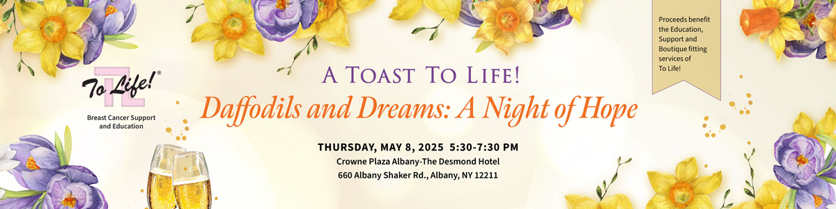 When someone in the Capital Region is diagnosed with breast cancer, To Life! is there with support, education to inform their decisions, and tools to enhance their quality of life. Your support is what enables us to be there. No act of generosity is too small to make a difference. Please give.