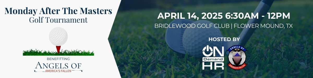 Angels of America's Fallen is honored to host the Monday After the Masters Golf Tournament in partnership with On Demand HR and the Texas Angel Wings Chapter.