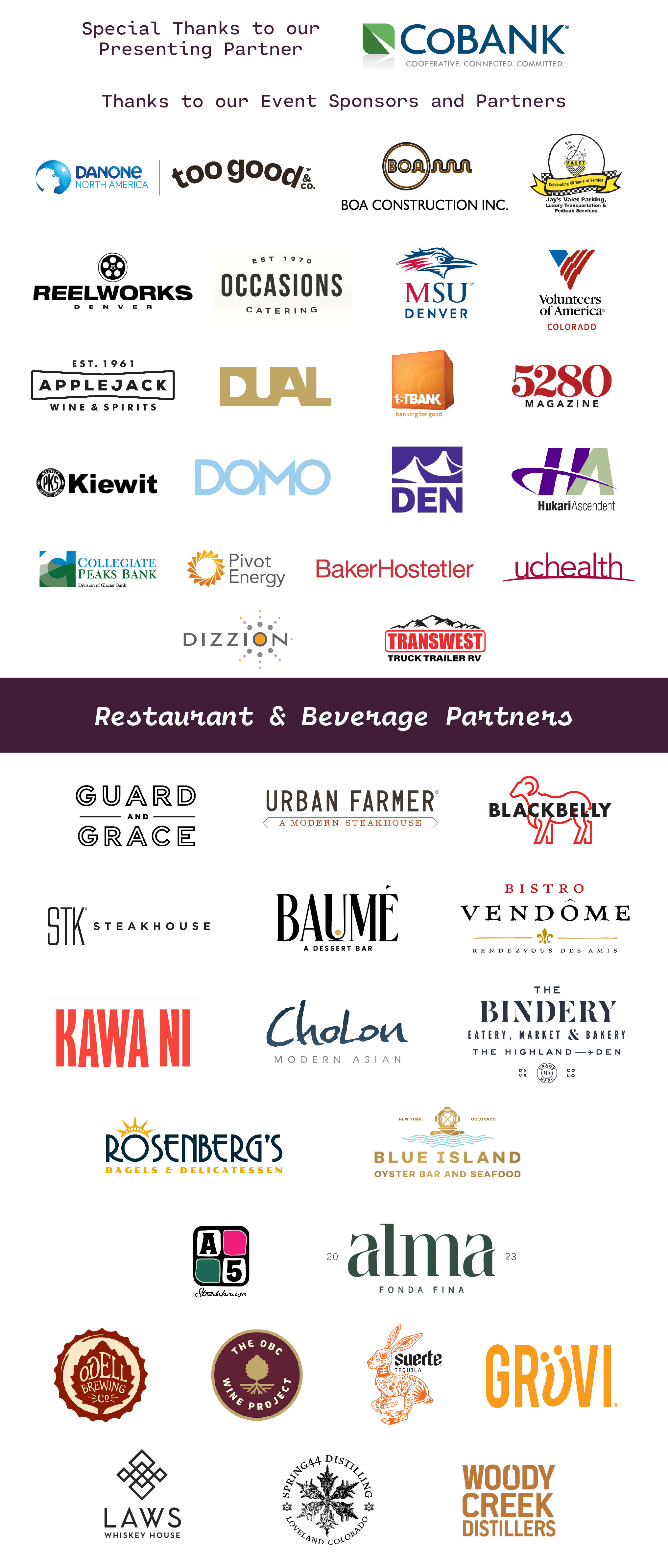 Guests will start the evening with a lively, social cocktail hour with a silent auction, followed by a family-style dinner with a menu prepared by Chef Troy Guard of Guard and Grace, and prepared by more of Denver's top chefs and restaurants* during a program to entertain and inspire. A live auction with incredible, experiential packages will take place during the program.
