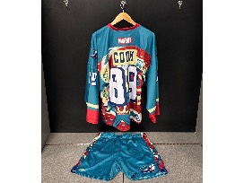 Colorado Mammoth Signed Marvel Jersey & Shorts Set. Jersey Size 52. Shorts Size M.