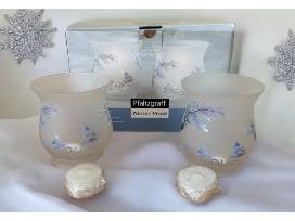 Pfaltzgraff Winter Frost Mini Frosted Hurricane Set of 2 Tea Candles, Aprox. 4'' in height, 2 tea lights included.