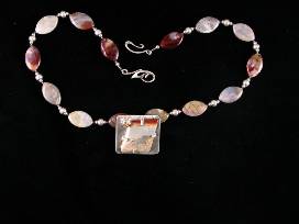 Brown flower agate beads with Hill Tribes sterling beads and sterling toggle clasp.