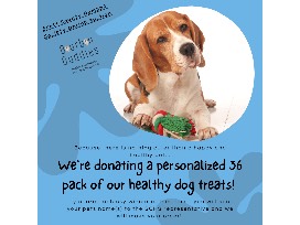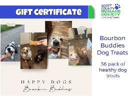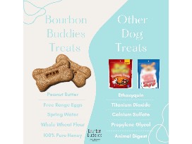 Healthy and homemade here in Central KY, Bourbon Buddies offers a personalized 36-pack of yummy dog treats. Treats contain peanut butter, free range eggs, whole wheat flour, 100% pure honey, and spring water.