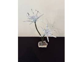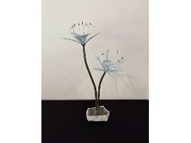 Two delicate Cahaba lilies rise like twin flames from a sleek granite foundation-nature's elegance anchored by elemental stone. Their pale white petals, luminous and star-shaped, unfurl with a quiet radiance, echoing the soft shimmer of moonlight on riverbanks. Set side by side, each bloom mirrors the other in grace and form, evoking harmony, balance, and the fleeting beauty of rare Southern waters. These lilies stand 21 inches tall at the highest point.