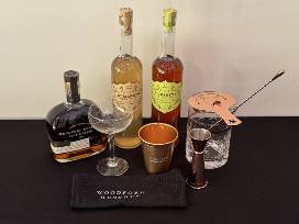 Enjoy these bottles of John Emerald Pecan and Fig Liqueurs to make your own craft cocktails at home. They make a great substitute for simple syrup to make drinks such as a "Pecan Old Fashioned" or "Fighattan." Also included are glasses and bar set, Woodford Reserve and a 1/4 barrel with custom finish.