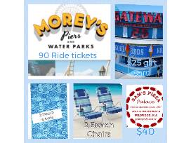 Get ready for summer fun with 90 tickets to Morey's Piers, $40 gift card to Sam's Pizza, $25 to the Gateway Arcade, 2 beach chairs, and 2 beach towels. Oh those Wildwood Days!