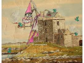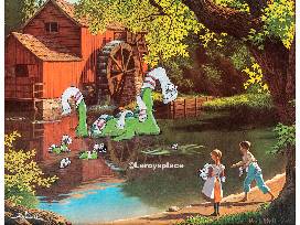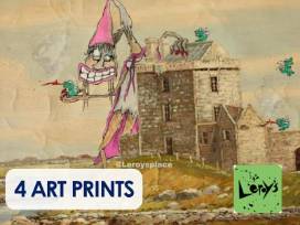 Each print was made from original Leroy's Place art. These images were originally hand drawn directly onto a vintage painting using pen and paint--Photoshop was NOT used to create these images.