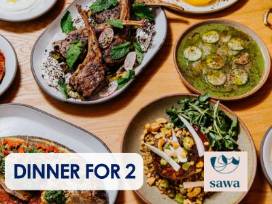 Gift certificate for a dinner for 2 at Sawa. Valid for a single use and up to $150.