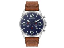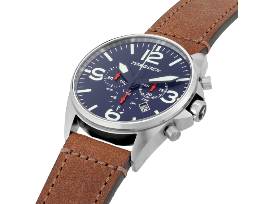 The watch's sophisticated Swiss quartz chronograph movement is made by Ronda, a highly regarded Swiss movement manufacturer. The T16 case is constructed from 2161L solid stainless steel and comes in two sizes, 41mm or 44mm with the option of a mineral or sapphire crystal lens. A double "O" ring crown provides water resistance for up to 10 ATM or 100 meters. The fine vintage Italian leather strap with heavy duty solid stainless steel buckle offers an elegant look complete with comfort and durability.