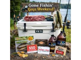 Pack it all into your new YETI cooler loaded with swag for the ultimate weekend escape. Perfect for the guys who love fishing, food, and unforgettable memories!