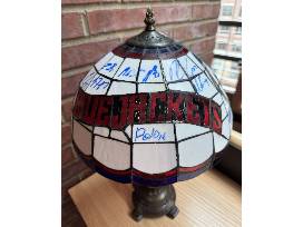 Light up your fan cave with this stunning Tiffany-style lamp, featuring an eye-catching Columbus Blue Jackets design and signed by team members! Whether you're gearing up for game night or just want to show off your team spirit in style, this unique piece is the perfect way to shine a light on your Blue Jackets pride. Don't miss your chance to own this one-of-a-kind collectible-bid now before it's gone!