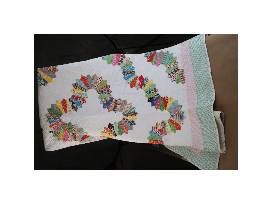 Handmade Quilt using 100% Cotton materials. Fabric lines that were used include Katie Jump Rope and Flea Market Fancy. Quilt size 67 x 70.