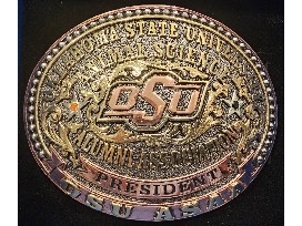 Create your own custom-made OSU buckles, 4" x 5". Winning bidder will have the opportunity to customize three buckles to their liking.