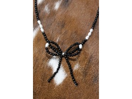 24" Black Onyx Bow with Freshwater Pearls! The perfect gameday bow!